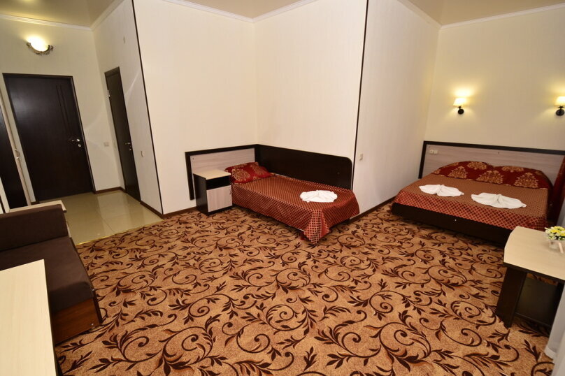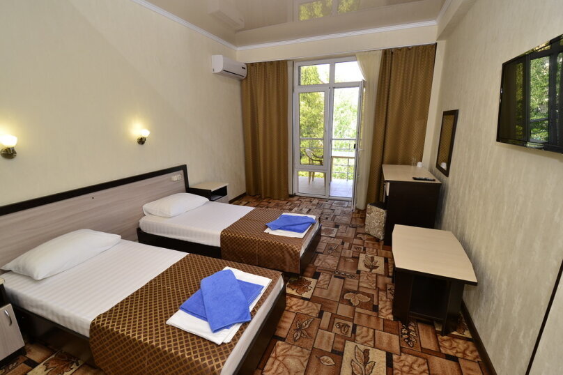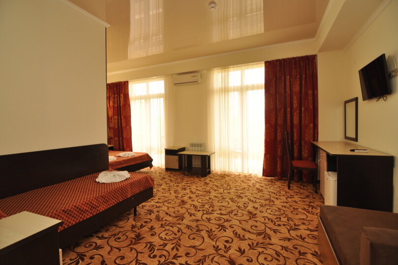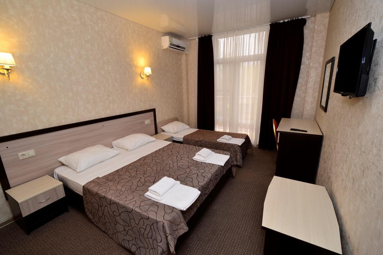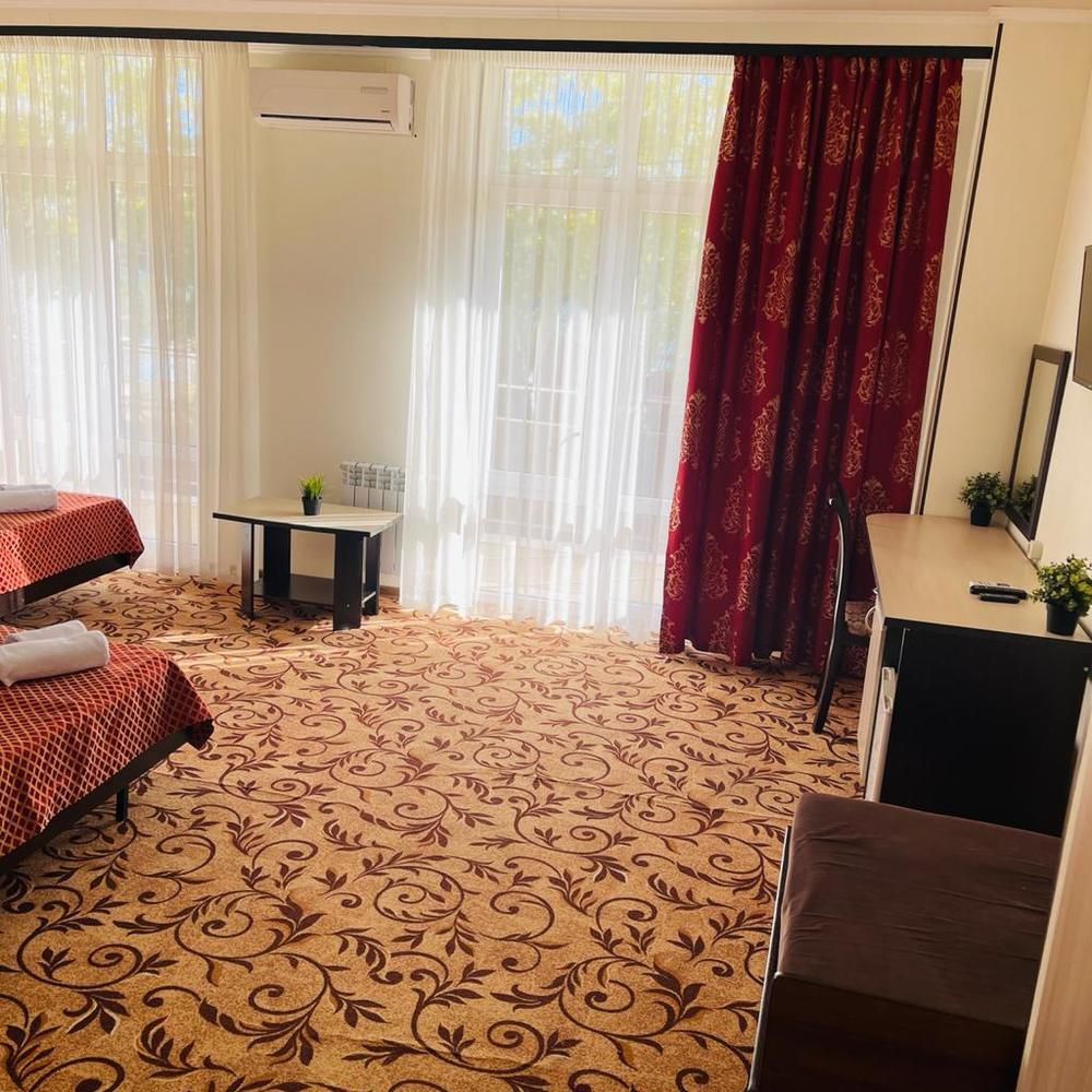 Номера большие, обслуживание по желанию хоть каждый день - вешаете табличку и убирают. Расположение очень удобное. Море рядом, Пятёрочка рядом, аптека рядом, Экскурсии можно заказать любые прямо у отеля. Прямо в здании отеля столовая с большим выбором блюд